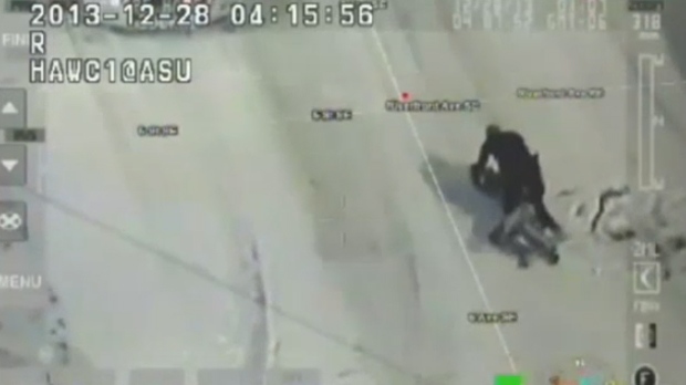Calgary policeman Trevor Lindsay arrived. According to Addai-Nyamekye, Lindsay pushed him to the ground, then used his taser on Addai-Nyamekye twice, before punching in the head several times and kicking him. Lindsay also knelt on his neck more than once. Lindsay put Addai-Nyamekye in handcuffs and then dragged him and threw him down again.