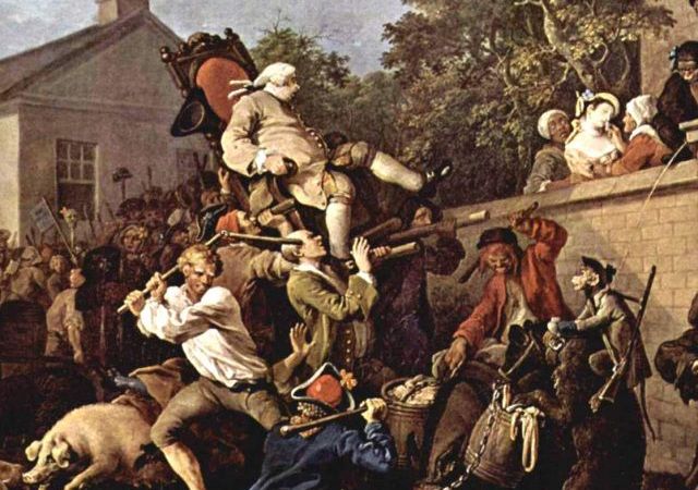 Featured image: The Humours of an Election, 4: Chairing the Member, 1754-55 by William Hogarth (UK). This is the fourth part of a series on corruption and graft during an election. The winning MP in Oxfordshire was a Tory. Photo credit: The Trustees of Sir John Soane’s Museum, London.