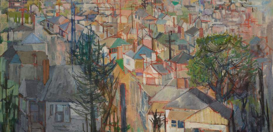 Featured Image: New Housing Project, by Molly Lamb Bobak (1956), National Gallery of Canada. Bobak, who died at age 94 in 2014, was the oldest living member of the 32 Canadian WWII war artists.