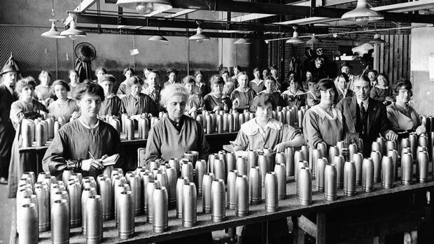 Featured image above: Women in a Montreal factory during World War I. Found on this site.