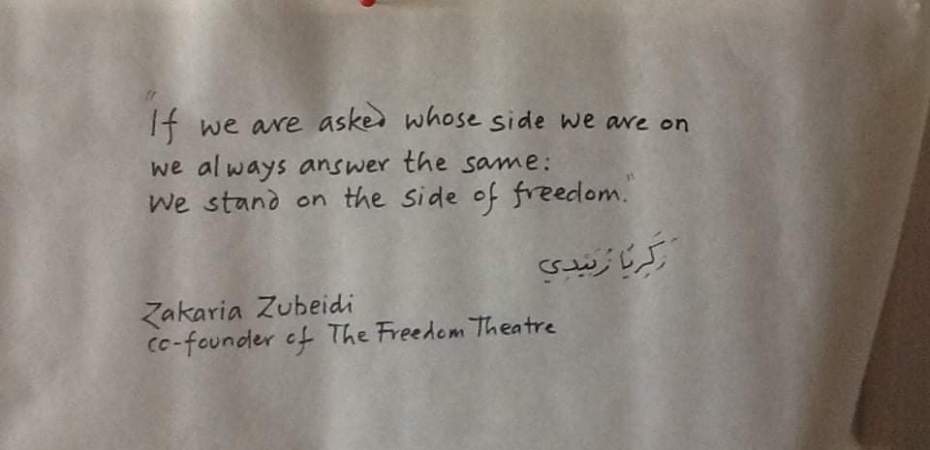 On Sept. 6, six Palestinian prisoners broke out of Gilboa jail in Israel.  One of them, Zakaria Al-Zubeidi, was a co-founder of The Freedom Theatre, which I visited in the Jenin Refugee Camp in the West Bank, just over 10 years ago.  The Freedom Theatre was also co-founded in 2006 by a well-known Israeli actor, Juliano Mer Khamis, son of  a Jewish mother and a Palestinian father.  The theatre was founded as a community hub to   “join the Palestinian people in their struggle for liberation with poetry, music, theatre, cameras.”  Al-Zubeidi was one of dozens of young people who had participated in the theatre, and wanted to use it to channel their outrage at the Israeli occupation.