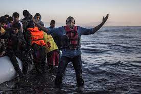 Photos: below refugees landing on Greek island 2015 (Reddit.com); photo of Omar El Akkad; book cover; photo of author Michelle Good; book cover.