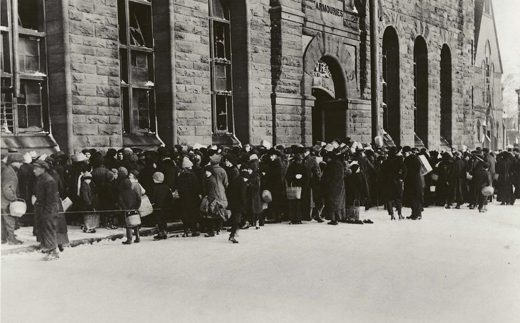 Clockwise from left: Advocates rally to save Mi’kmaw Native Friendship Centre’s homeless shelter (Globalnews.ca); credit: Chris Farber/UNICEF/Gettyimages; 8×8 foot shelter supplied by Archdiocese of Halifax-Yarmouth (Atlantic.ctvnews.ca); After Halifax Explosion, homeless queue for food and shelter in 1917-18 at the Armouries; 250 packaged meals at Souls Harbour Rescue Mission/Facebook