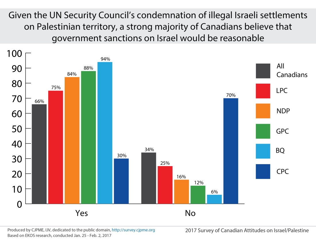 Below are two polls conducted by EKOS in 2017. 66-78% of all Canadians believe that sanctions and/or a boycott of Israel is the right thing to do. More importantly, this rose to 84-92% of NDP supporters who back sanctions and boycott. This is Singh’s and the real test for today’s NDP.