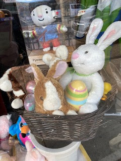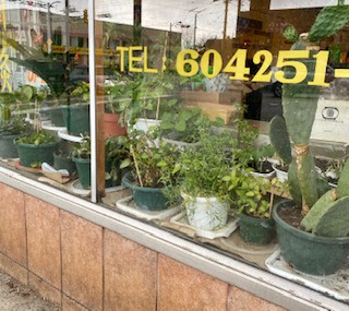 Above: clockwise–a shop with incense, heavy jewelry and fabrics; store window for Easter; my local library; panoramic view of the Iron Workers Memorial Second Narrows Bridge