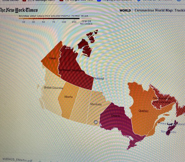 However, the New York Times (!) just released the statistics up to April 20. According to their go-to statisticians at Johns Hopkins University, the two most Covid-saturated provinces in Canada now are Nova Scotia and Ontario. As for BC (where I am presently on holiday), the sixth wave hasn’t really hit yet. BC has the lowest numbers in the country. The case numbers in Nova Scotia are way up. In fact, according to the Times, Covid cases have increased by 65%.