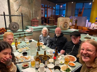 Clockwise: Friends at a Sushi restaurant; Karen, who works with Omri, came on the excellent labour history tour he arranged for us; the privatization of health care; participants on our labour history tour, downtown Vancouver.