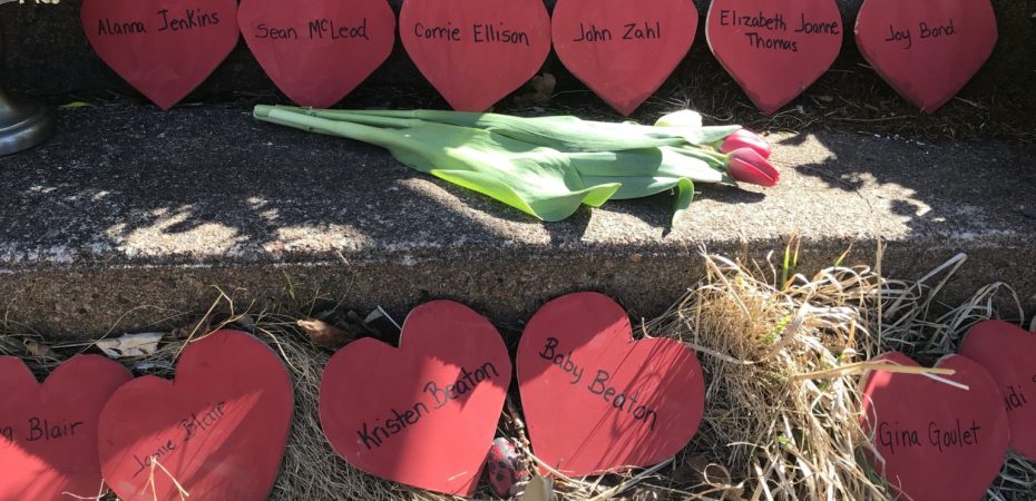 Featured Image: Memorial at the Portapique church hall (photo by Joan Baxter)