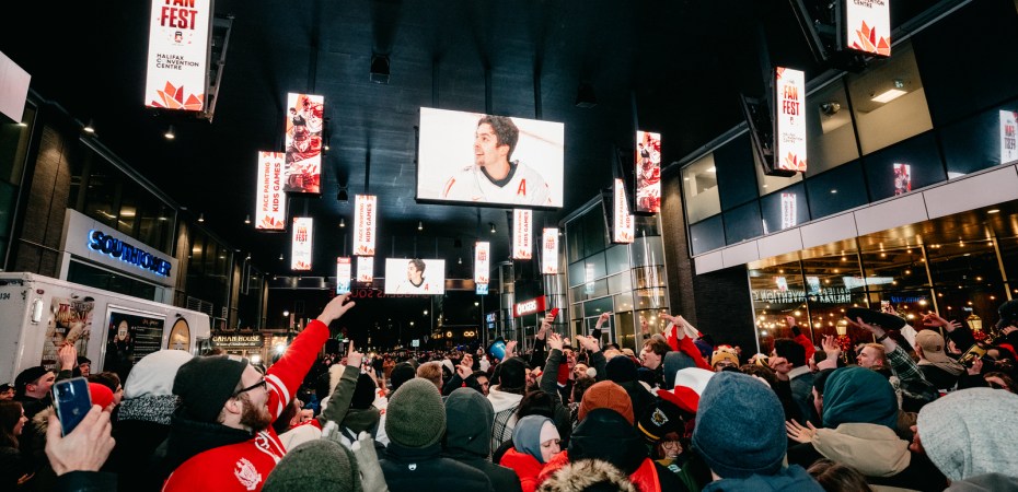 Featured Photo: IIHF Victory party on Jan. 5, 2023 at the outdoor plaza at the Halifax Convention Centre (Discover Halifax).