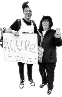 As I gratefully took a seat in a canvas deck chair on the grassy knoll, a number of ECEs and EPAs came over to tell me what their lives are like. EPAs often care for a special needs child one-on-one all the school day; care could include academic coaching, toileting, helping with eating and food at lunch, assisting them getting off and on the school bus, and administering some medications. Sundus has been working as an EPA for a year in an elementary school with kids up to Grade 5. “My wages are $1400 a month – after taxes. I’m really enjoying working with kids, but we don’t get a living wage! The employer has no plans to call us back to work and they refuse to meet since we are on strike.”