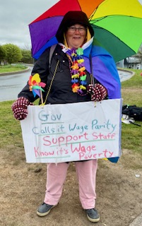 Ruth Harlow is an ECE (Early Childhood Educator) who has been working with four year old pre-primary students at a public school in Halifax for a year and a half. About the provincial government, Harlow says, “They’re not respecting us. Tim Houston [the premier] says he does but doesn’t. In 2017 he said inclusion was important but there is not proper support in the classrooms.” Ruth says wages must at least keep up with inflation, “but it’s nowhere close. It’s wage poverty.”