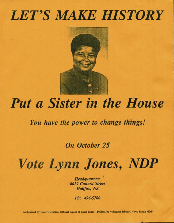 In 1993, Jones became the first African-Canadian born woman to run in a Canadian federal election, as the NDP candidate for Halifax. In the 1990s, Jones co-chaired the CLC National Anti-Racism Task Force—the first ever widespread examination of racism in the Canadian labour movement. It resulted in a groundbreaking final report that demanded bold measures to address racism internally.