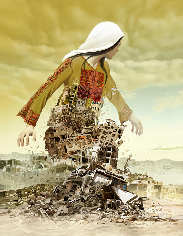 Featured image at the top. How they see it & How we see it by Gazan artist Bushra Shanan. She created this artwork about the 2014 Israeli war on Gaza. For more on this artist read this. Photo is from The Times of Israel.
