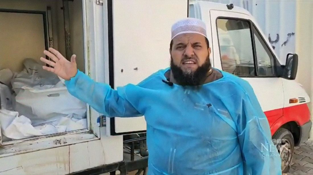 The photo, below, is of an unnamed doctor in Gaza, who was one of 34 Palestinian speakers not identified by name on the CTV National News. He appeared onscreen for eight seconds.