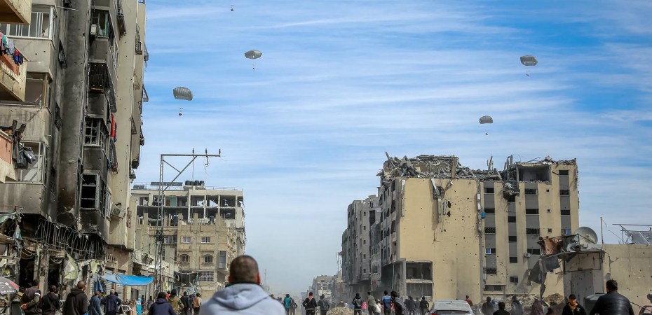 Featured photo at the top: Palestinians run along a street as humanitarian aid is airdropped in Gaza City on March 1. Photo: AFP via Getty Images