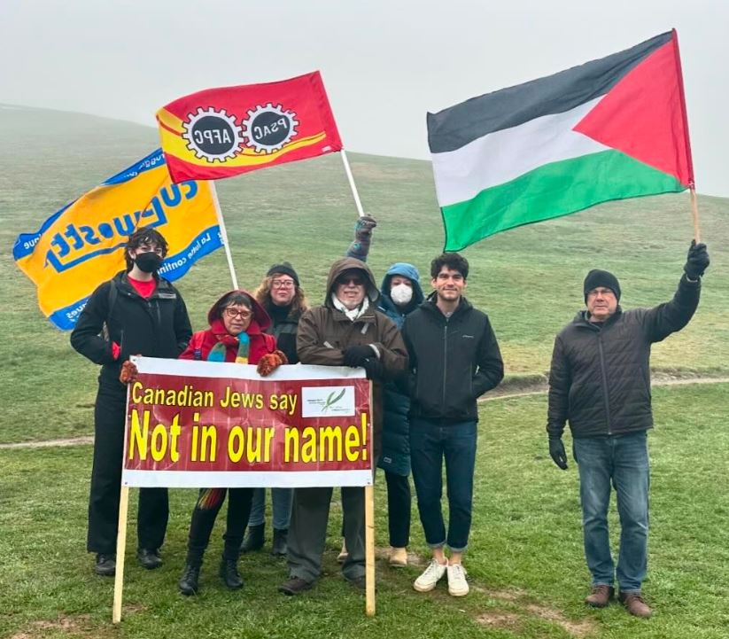 Some activists from Independent Jewish Voices (IJV-Halifax) and Labour 4 Palestine at the weekly Pro-Palestine demonstration on Citadel Hill in Halifax, Apr. 16, 2024