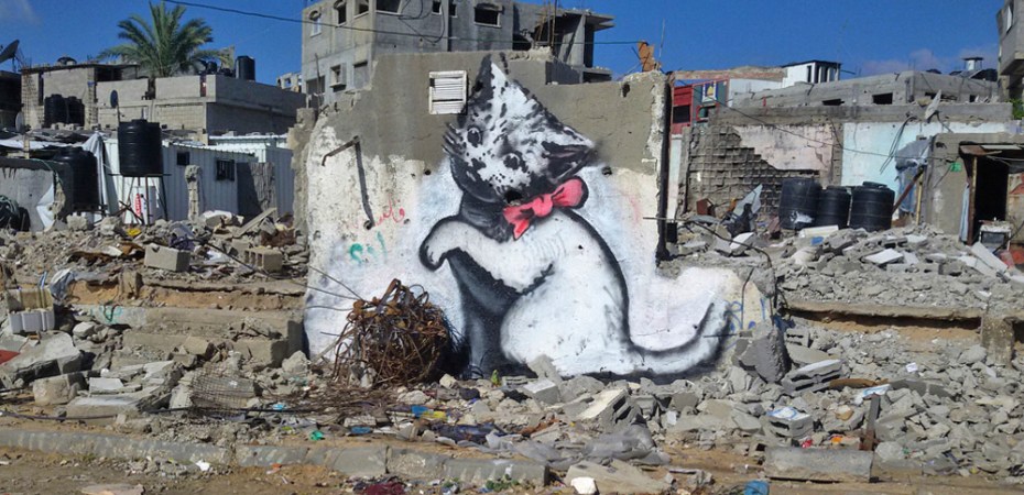 Image at the top: One of three Banksy art works in Gaza, 2015.