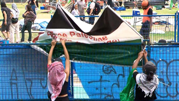 Image at the top: Taking down the encampment at University of Toronto, 3 July 2024 (Credit: CP24)