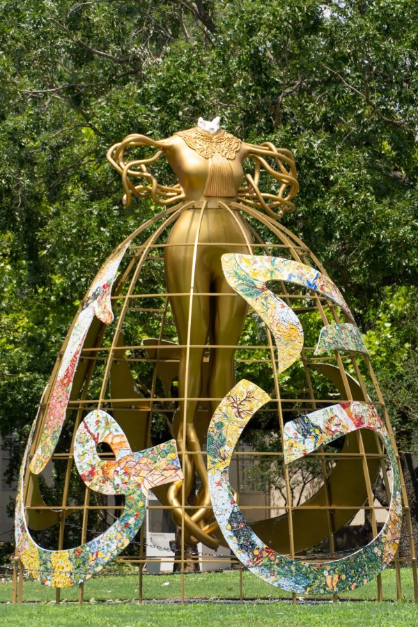 Two new sculptures were beheaded by right-wing men recently.  As reported by Hyperallergic, the excellent online arts magazine, Witness by Shahzia Sikander was beheaded at the University of Houston on July 8.  Said sculptor Sikander her works “demand a reimagining of the feminine not simply as Lady Justice with her scale, but of the female as an active agency, a thinker, a participant as well as a witness to the patriarchal history of art and law.” On July 1, Esther Strauss’s sculpture Crowning  “drew intense ire from some conservative Christians who viewed the work as “blasphemous” and “scandalous”. It too was beheaded at St Mary’s Cathedral in Linz, Austria.