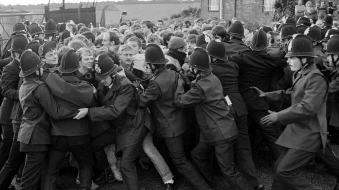 Miners and police clash during a strike at Tilmanstone Colliery in Kent in September 1984
