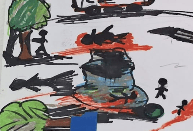 At the top: Child’s drawing of death and destruction in Khan Younis, Gaza courtesy of Doctors Without Borders. To read more, see this.