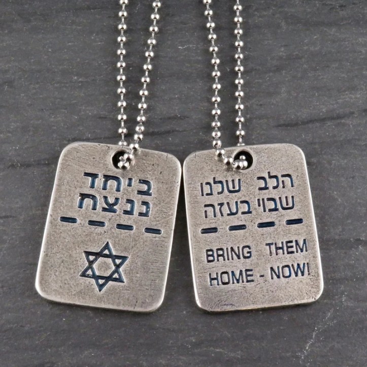 A Jewish woman in the swimming pool the other day, wearing a metal dog tag, the type worn by soldiers in the IDF, which says bring the hostages home.