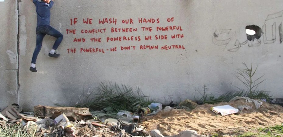 Image at the top: Banksy uses Gaza as a canvas to highlight plight of Palestinians (Banksy.co.uk). Here’s an article about the artwork which dates from 2015.