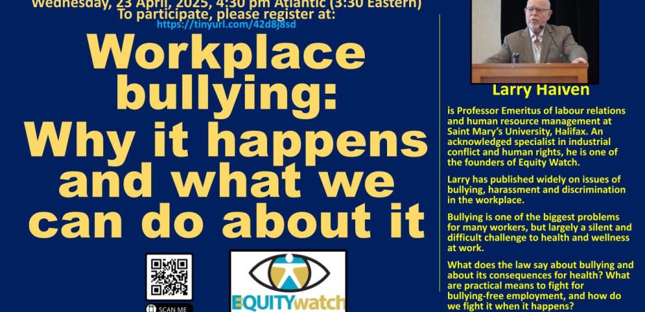 Larry Haiven is Professor Emeritus of labour relations and human resource management at Saint Mary’s University, Halifax. An acknowledged specialist in industrial conflict and human rights, he is one of the founders of Equity Watch.