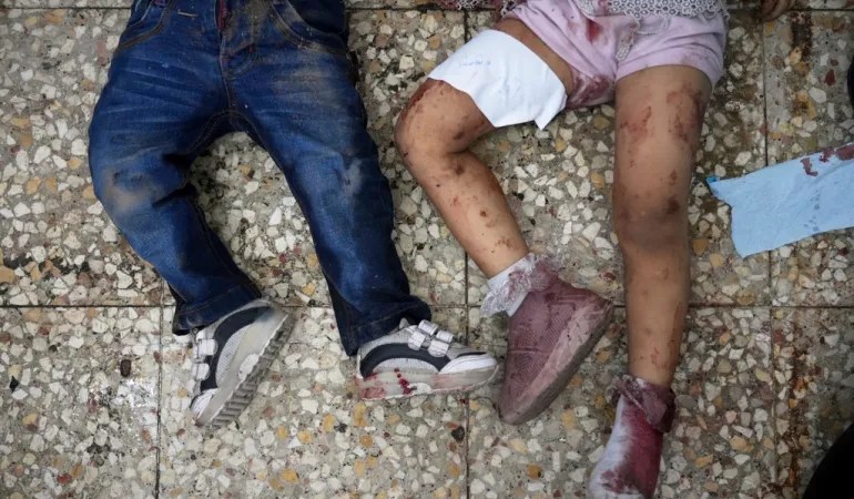Image at the top: The bodies of two children lie on the hospital floor of a Project Hope-run medical clinic in Deir el-Balah, Gaza Strip, after an Israeli strike on Thursday 10 July [credit: Abdel Kareem Hana/AP Photo]