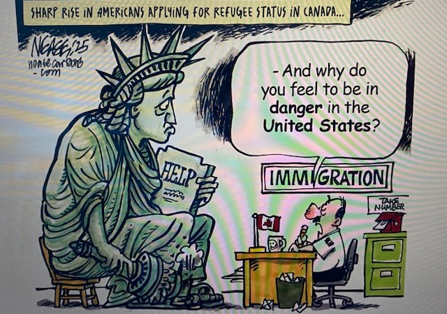 Why did Canadian parliamentarians give a tribute, a standing ovation, to this US pro-fascist? Was it to curry favour with Trump? To duck away from Trump’s hitting us with huge trade tariffs? Was it to ignore the fact that Trump’s trade penalties have cost us 41,000 jobs in July and 66,000 in August?