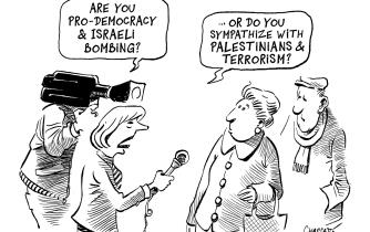 Is every Palestinian in Gaza really a terrorist? Are there Hamas bomb-making plants, or arms stashes, in underground tunnels beneath families’ homes in now-toppled buildings? Where is the evidence that in more than 30 Gaza hospitals, before the IDF destroyed them, there were secret tunnels to hide armed Hamas militants? Are most of the Gazans’ wheelchairs for the elderly booby-trapped? Like in a James Bond film, do their crutches and canes also fire bullets?