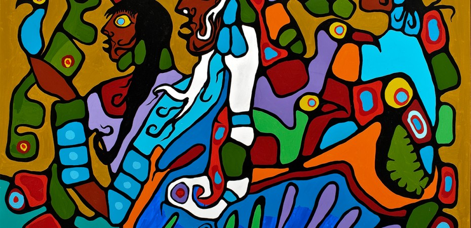 Norval Morrisseau (1932–2007), Shaman and Disciples, 1979. McMichael Canadian Art Collection, 1979 © Estate of Norval Morrisseau. Morrisseau’s paintings have been illicitly copied and reproduced with hundreds if not thousands of fakes on people’s walls. This two-hour doc about the trade in fake Morrisseaus is startling, fascinating and funny — There Are No Fakes; watch it free here.