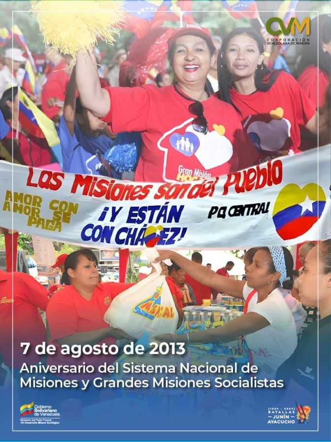 From Instagram: a celebration for Chavez, who died in March 2013, and the success of the Misiones. The banner reads: Missions are by the People and they are with Chavez; and love is repaid with love.