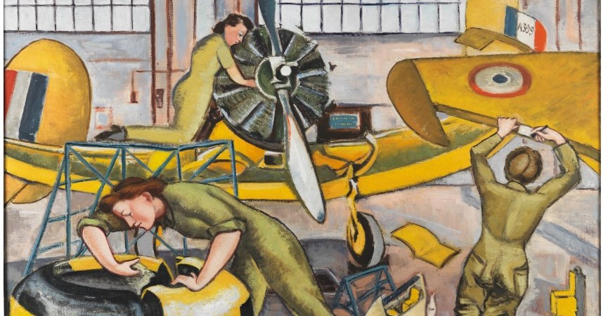 Image at the top: Maintenance Jobs in the Hangar, 1945 by Paraskeva Clark – Beaverbrook Collection of War Art – Canadian War Museum, Ottawa. Watch Who is Paraskeva Clark? a 9 minute film here.