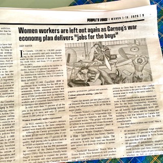 A second consideration about women and work is that manufacturing arms amounts to jobs for the boys.  Engineering, assembly, transportation, construction, mining – these are all heavily male-dominated fields and workplaces.  PM Carney and his buddies are building a vast war industry in Canada that promises to be very lucrative for the 600 manufacturers.