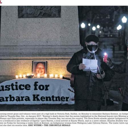December 15, 2020 judyhaiven Halifax Vigil for Thunder Bay’s Barbara Kentner: her killer remains free on bail